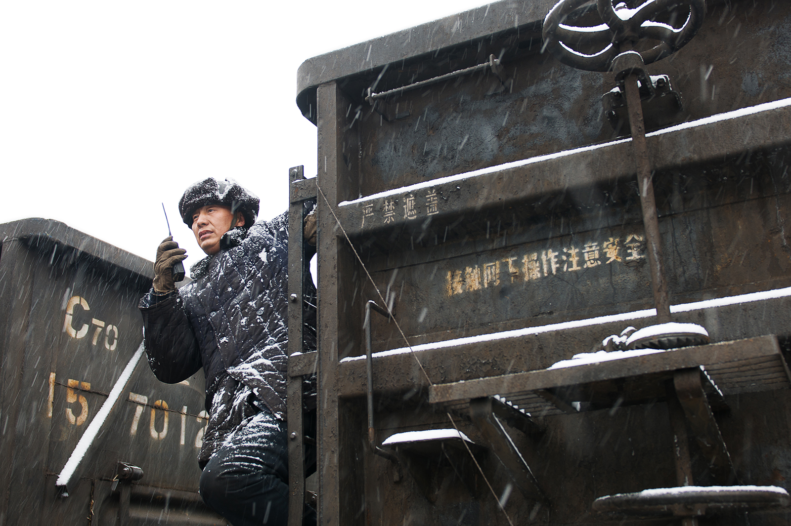迎着风雪确保行车安全的安钢运输部调车员。(特约通讯员 殷海民 摄)