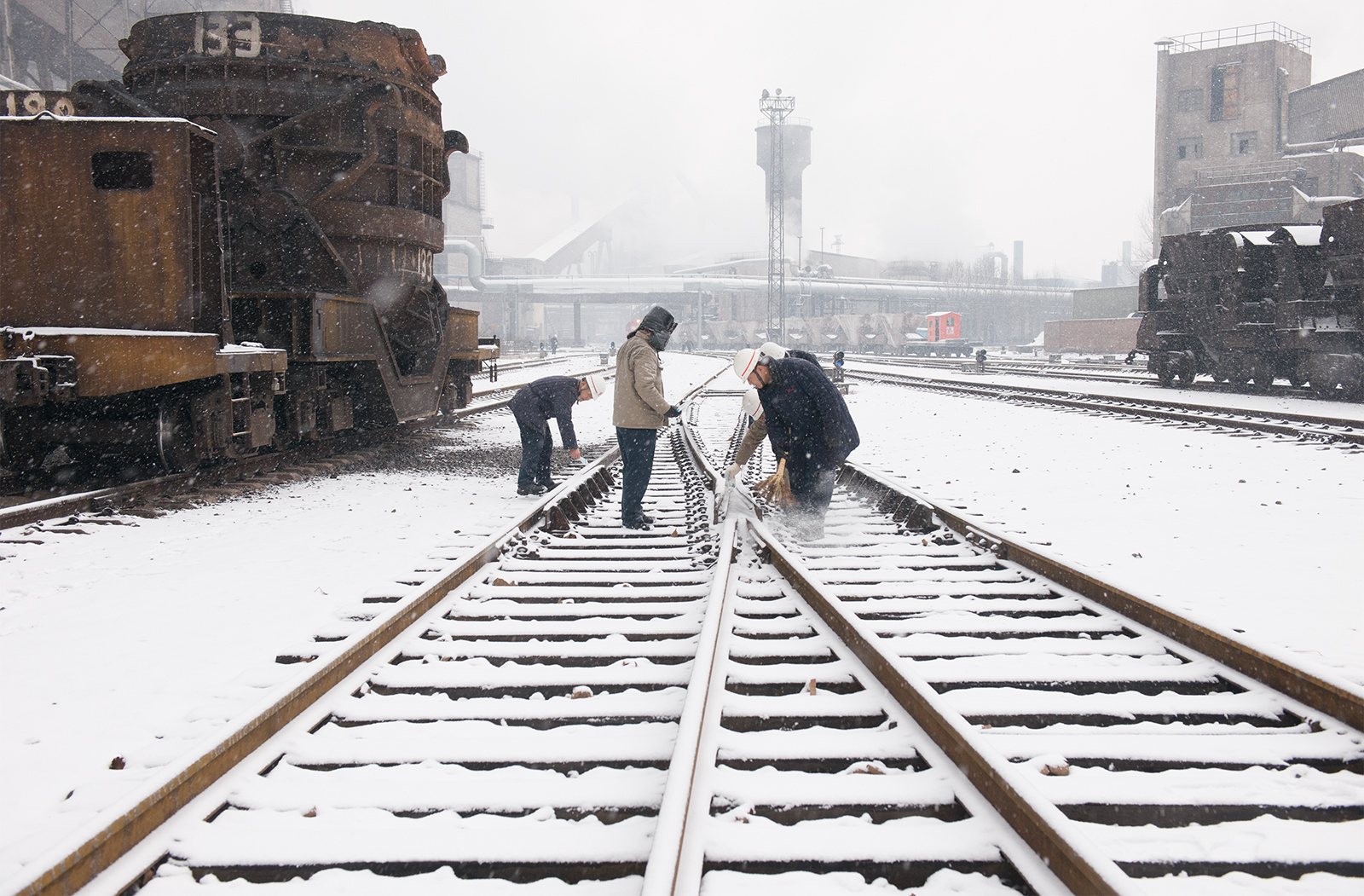 安钢值班人员在清扫厂区铁路道岔积雪。(特约通讯员 殷海民 摄)