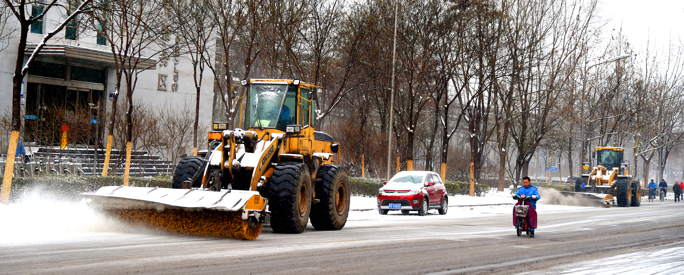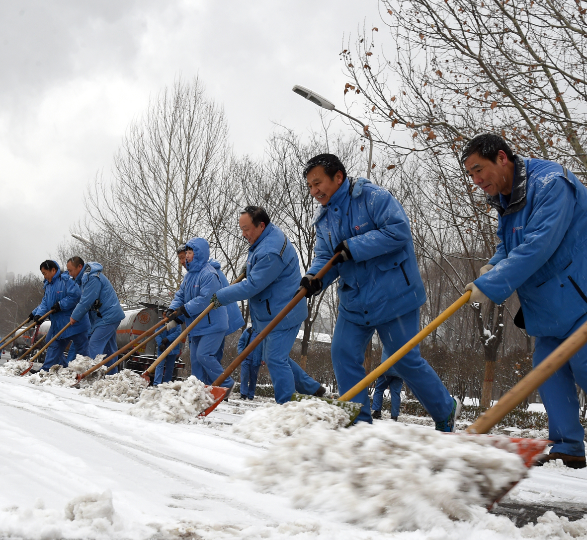 太钢职工上班后自动自发的清理积雪。 (特约通讯员 王旭宏 摄)