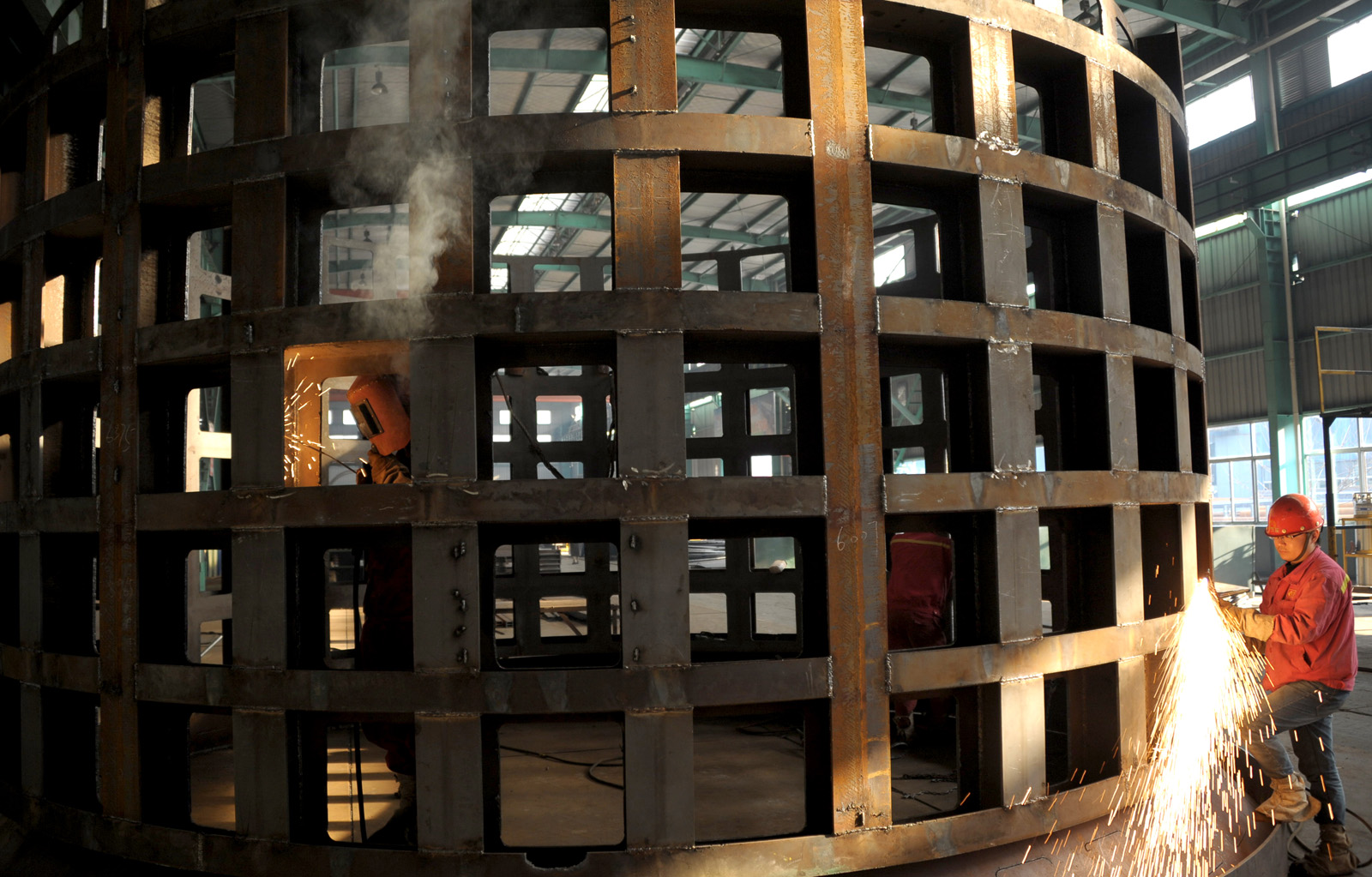 2月13日,沙钢机修总厂成功自制7.1米焦罐,节省外购费用36万元。近年来,沙钢机修总厂积极降本增效,进一步扩大外协转自制,努力提升自制能力,有效降低了外购成本。2017年以来,共节省各类外协费用2000余万元。图为该公司钳工正在对焦罐罐体进行拼焊。(孙静波 王波 摄)