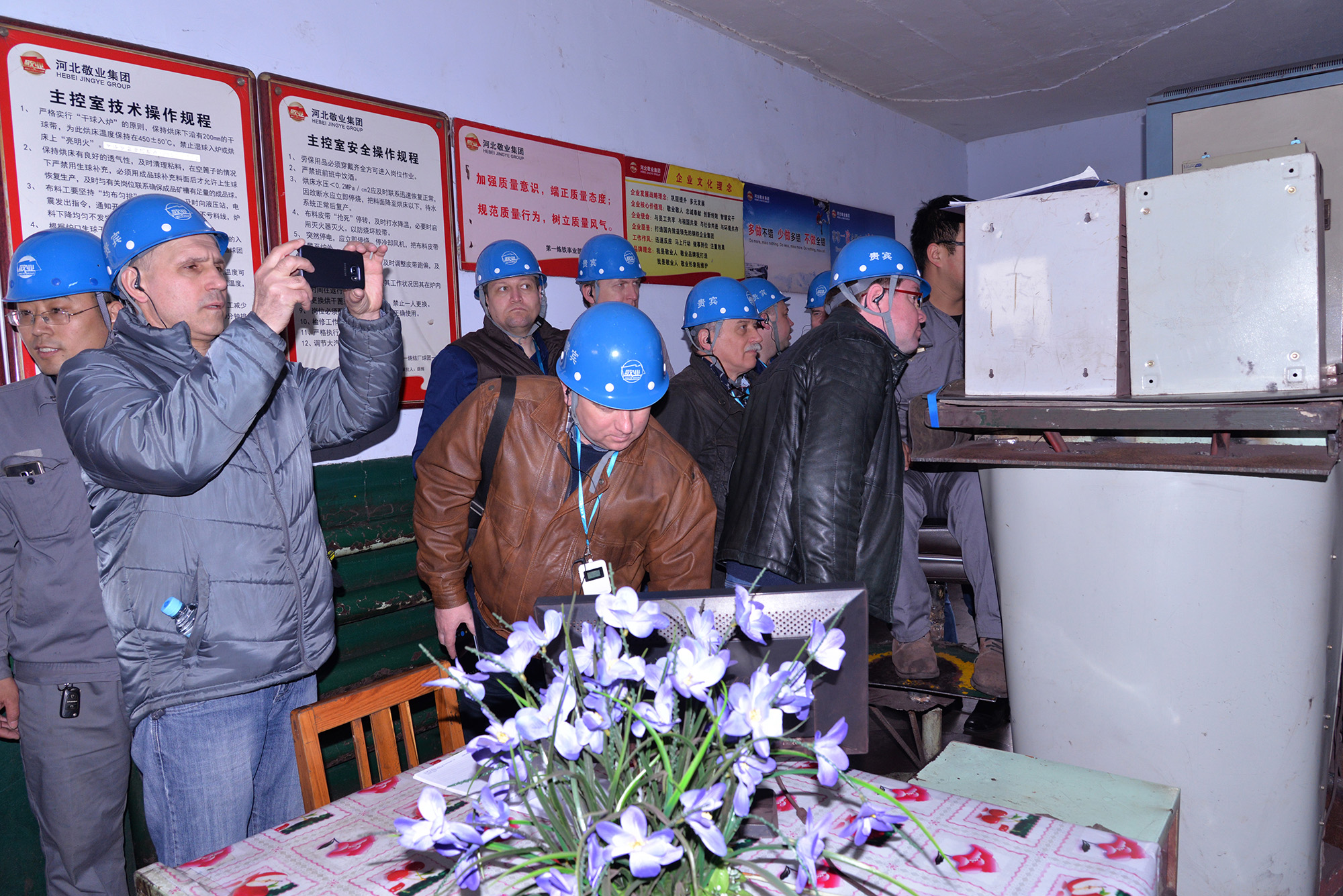 自2014年河北敬业集团和乌克兰矿山开展业务合作以来,均取得长足发展,为集团顺利开展生产经营得到了可靠保证。乌克兰冶金集团贵宾一行,在集团领导陪同下,现场参观了各烧结单元的的竖炉造球岗、主控室、竖炉成品链板岗等相关岗位。随后,在集团办公楼贵宾室,双方就钢材、铁矿石等领域更深入的交流与合作进行了深入探讨,为今后长期实现合作共赢打下了坚实基础。图为贵宾一行现场参观烧结单元球团车间主控室。(特约通讯员 肖建国 摄)