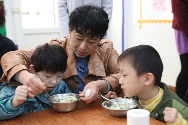 3月8日,中信泰富特钢集团兴澄特钢女工委组织女工代表赴江阴市儿童福利院开展做一天“爱心妈妈”活动,在福利院,女工代表为孩子们包馄饨,和孩子们热心交流,过了一个不一样的三八妇女节。(特约通讯员 陆卫宇 摄)