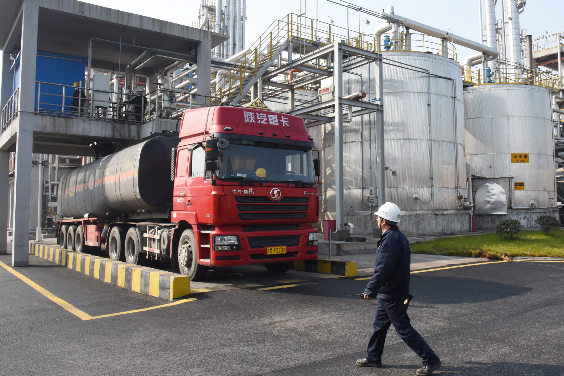 2017年以来,马钢奥瑟亚化工有限公司积极开拓化工产品海外销售市场,继去年底成功将6000吨沥青产品销售至迪拜后,今年1、2月份又拿下了9000吨沥青的出口订单。图为该公司职工正在装车发运沥青产品。(特约通讯员 胡智慧 摄)