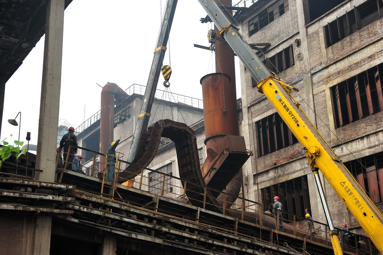 根据监测报告及实际排放核算,邢钢8平方米竖炉拆除后,每年可减少二氧化硫排放205.4吨,氮氧化物308.1吨,颗粒物51.35吨。图为拆除现场。(周勇 尹军峰 摄)
