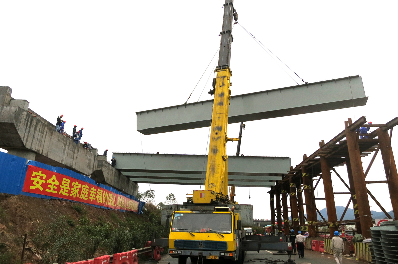 韶钢工程公司参与高速公路项目钢梁吊装施工
