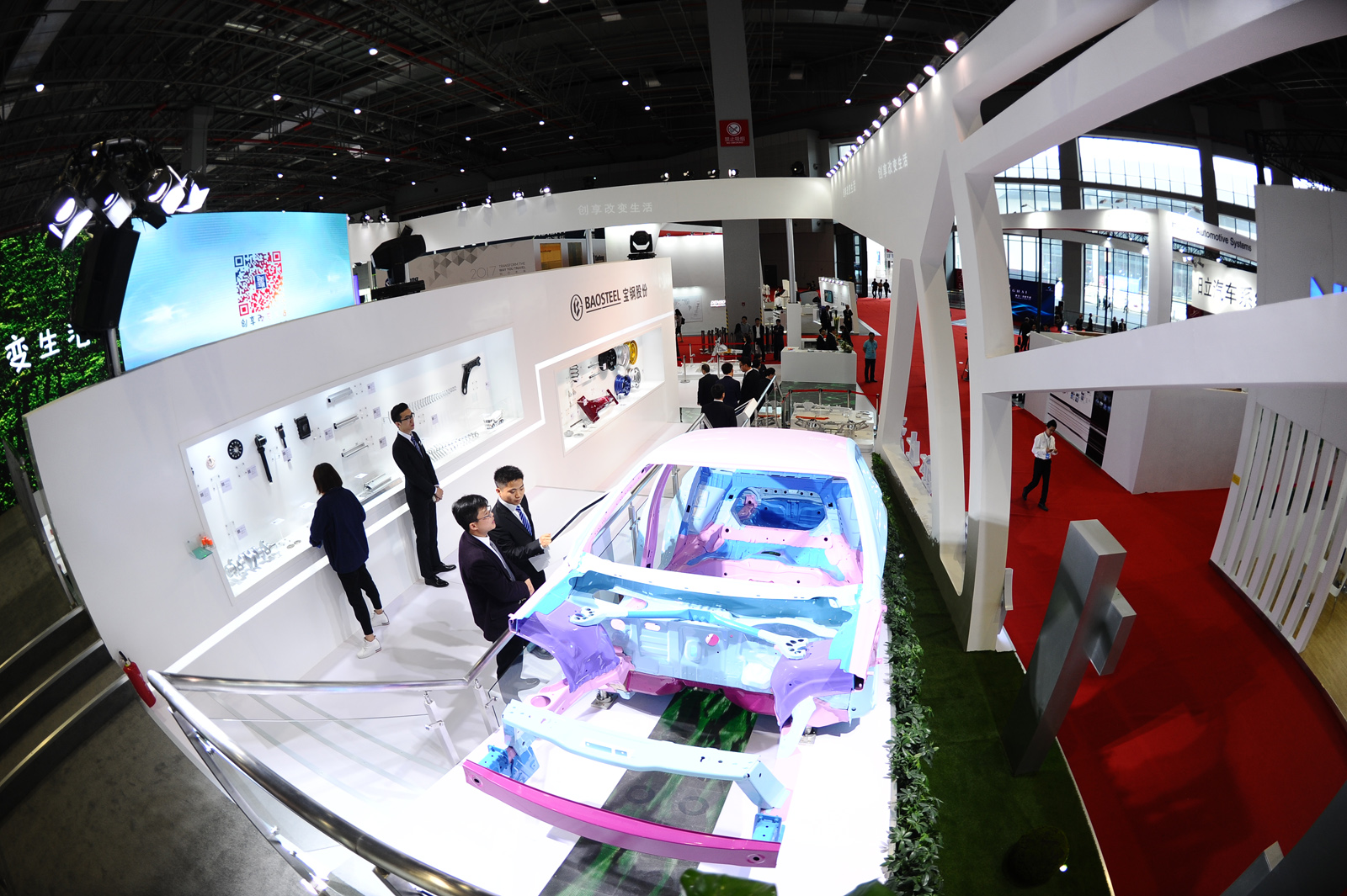 4月19日,2017年上海车展正式开幕,由宝武集团宝钢股份带来的“全明星”汽车用钢整体解决方案在展会上亮相。此次宝钢股份展台按受众体验划分为“轻量化整体解决方案”展示区、“智能化”展示区和“创享改变生活”体验区三大区域,展示了宝钢股份汽车用钢的新产品、新材料和未来发展趋势。(记者 吴永中 通讯员 张勇 徐笑然 摄影报道)