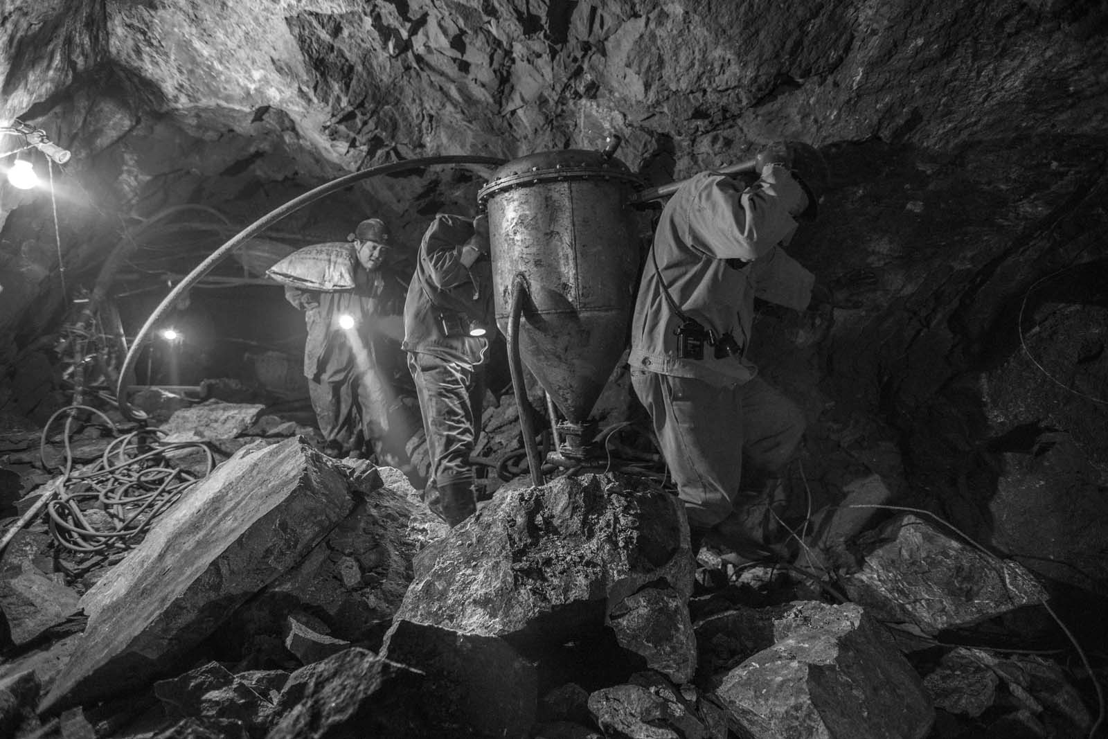 一大早,爆破工们就开始下到矿井,赶赴当天需要爆破的地点。