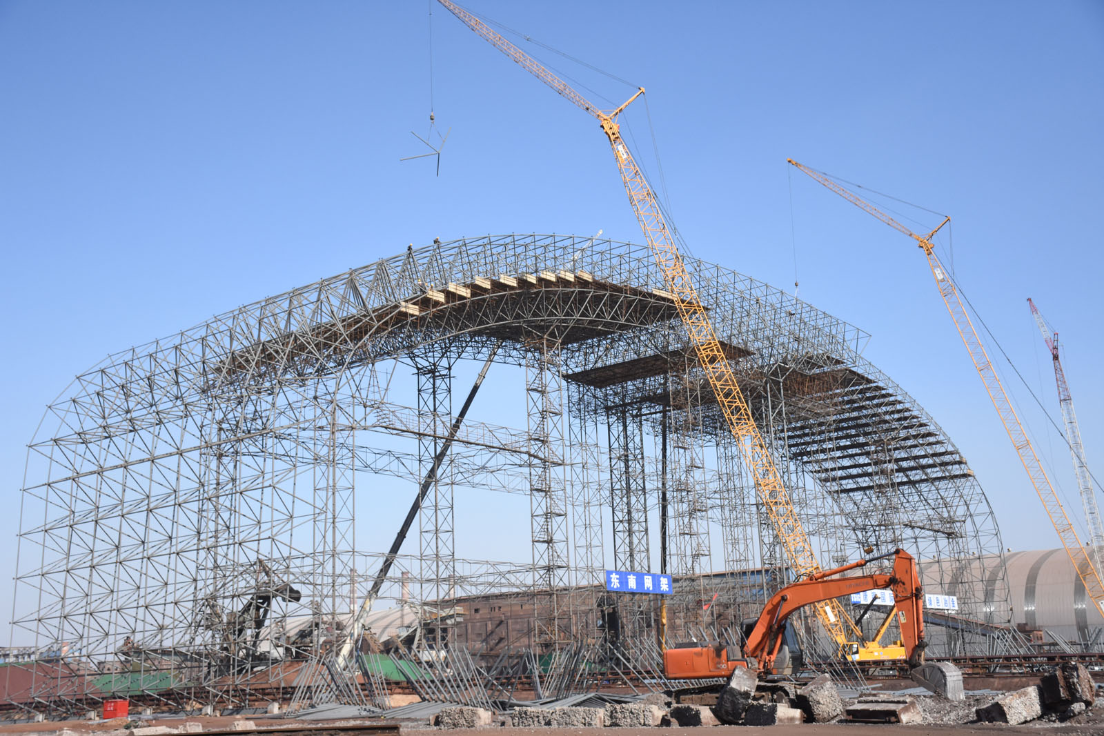 河钢唐钢炼铁部料场棚化封闭工程施工进展顺利