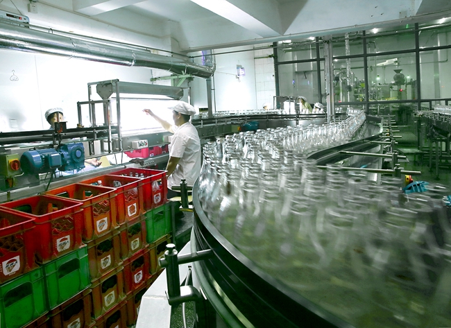 宝武集团武钢快餐食品饮料公司抓住夏季饮料市场需求增量机遇,全力组织生产(如图)。截止6月20日,“咸伙计”“武钢人”“维士可”等9大饮料品种销售总量达54万件,其中拳头产品“咸伙计”销售量达35万件。据悉,过去,该公司饮料主供武钢生产一线,今年,该公司将把占生产总量的80%的饮料销往外部市场。(记者朱旺春 摄)