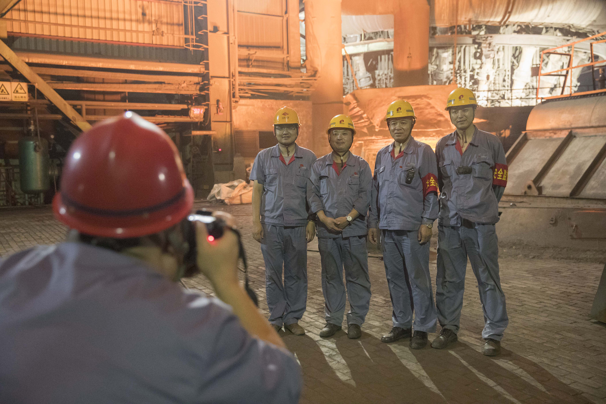 7月7日晚,济钢3号1750立方米高炉炉台上,最后一炉铁水前,职工恋恋不舍,纷纷合影留念。