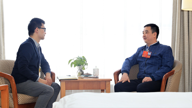 图为谢生瑞正在接受中国冶金报社专访。 (本报两会报道组记者 顾学超 摄)