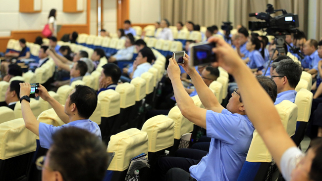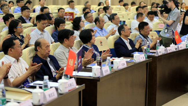 会与领导嘉宾认真聆听徐匡迪贺信内容。