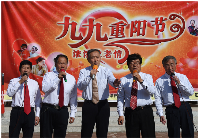 图为:马钢南山矿双退办老年合唱团在活动现场登台献唱,欢度属于自己的节日。