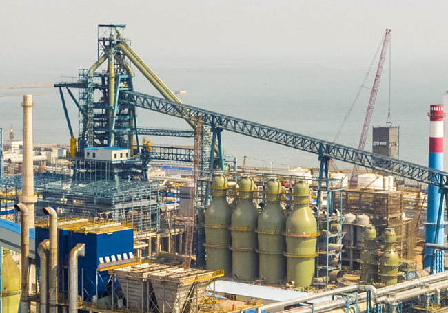 1月6日,山钢集团日照公司2号5100立方米高炉热风炉开始烘炉,为高炉顺利投产打下坚实基础。2号高炉热风炉工程于2017年6月开始土建基础施工,2018年10月4座热风炉砌筑封顶完成,炉壳累计施工总重量约2160吨,砌筑耐材总量约2万吨。图为2号5100立方米高炉外景。(郭阳 摄)