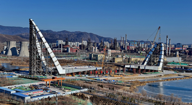 据首建投公司有关部门负责人介绍,新首钢大桥是长安街西延道路工程的重要节点工程。大桥从首钢北京园区一路升高,到永定河上靠两座斜拉塔拉起;桥型为双塔斜拉钢构组合体系桥,是北京地区最大跨径桥梁。大桥预计2019年底前具备全线通车条件,届时全线通车将成为贯通京西交通的主动脉,成为长安街在京西的标志性景观建筑。 据悉,新首钢大桥钢箱梁、钢塔所用钢板全部由首钢制造供应,各类钢板用量合计约4.5万吨,是首钢高性能桥梁钢又一次在国内重点市政精品工程建设中实现整桥供货。图为新首钢大桥顺利合拢。(何志国 王京广)