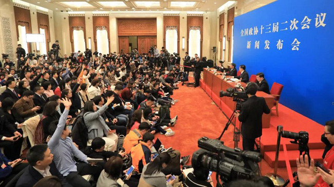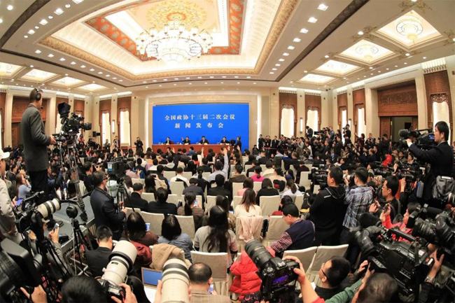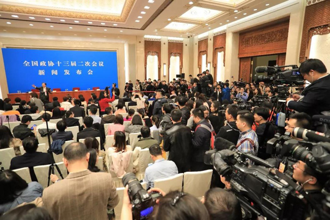 ▲3月2日15:00,全国政协十三届二次会议新闻发布会在人民大会堂一层新闻发布厅召开,新任政协大会新闻发言人郭卫民首次亮相,他向中外媒体介绍了本次大会有关情况并回答记者提问。这也是2019年全国两会举行的首场新闻发布会。
