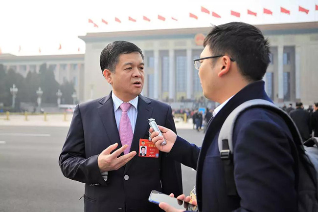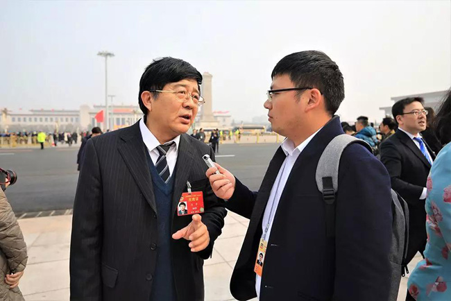 高峰委员接受《中国冶金报》、中国钢铁新闻网两会报道组记者现场采访。