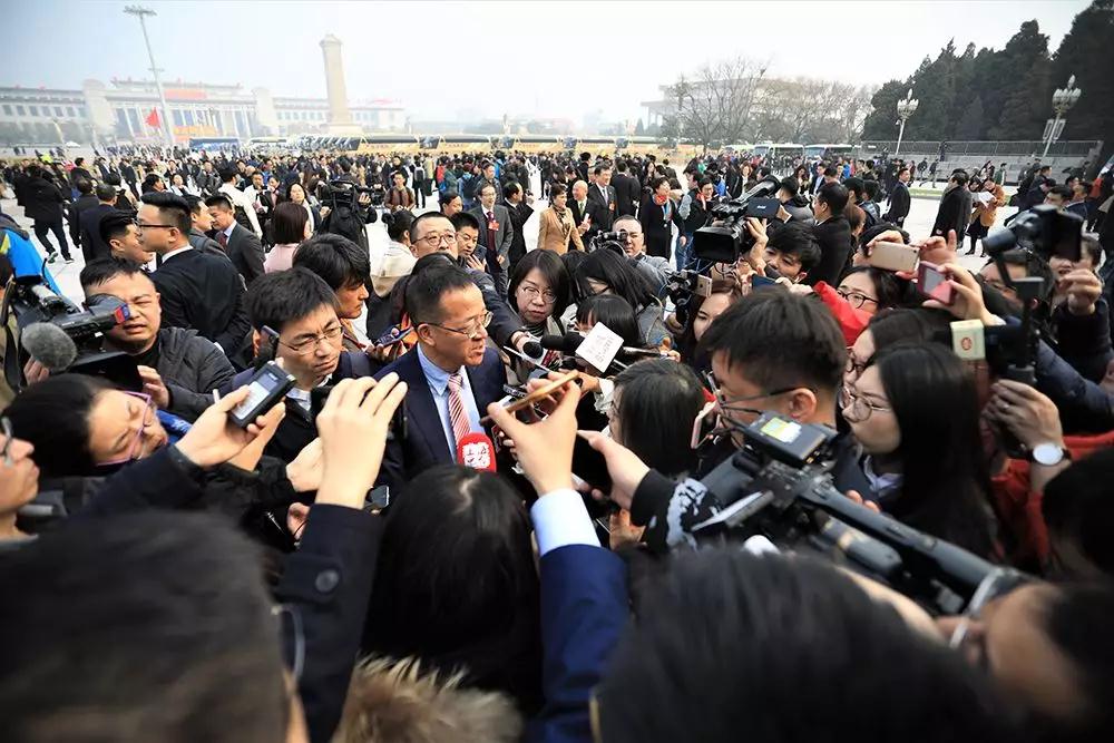 开幕会结束后,一些委员在广场上被媒体记者“包围”追问。