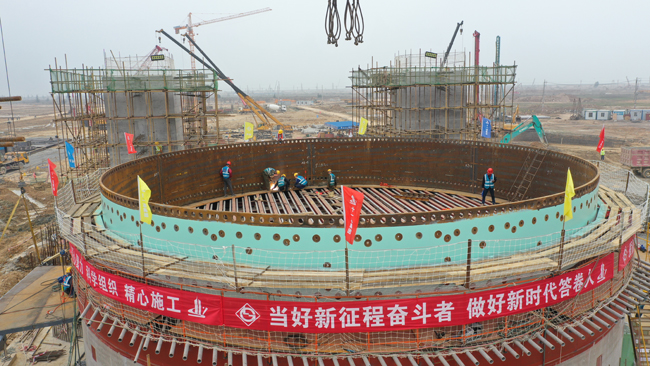 柳钢防城港钢铁基地1号高炉第一圈炉壳吊装到位
