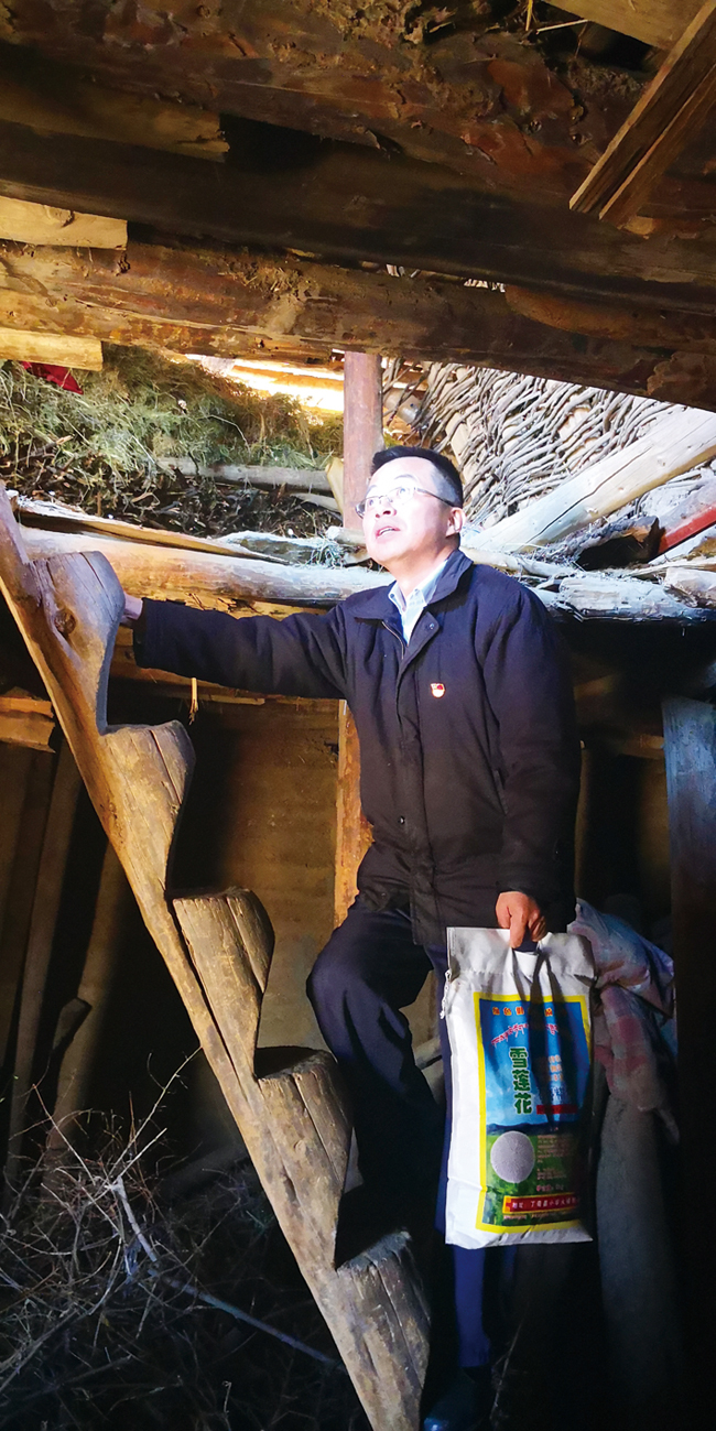 农牧民居住的传统土屋下层一般是牛棚。援藏两年的孙劲已经可以熟练地从独木梯上下楼了。