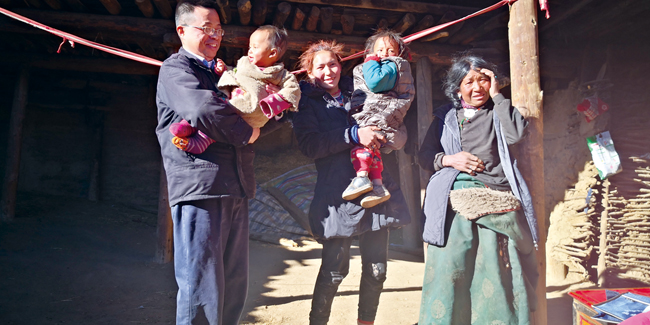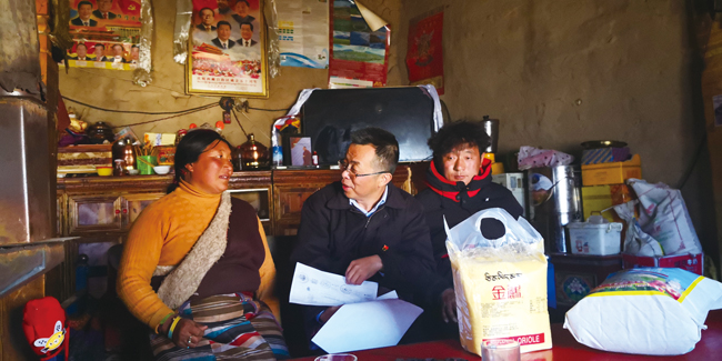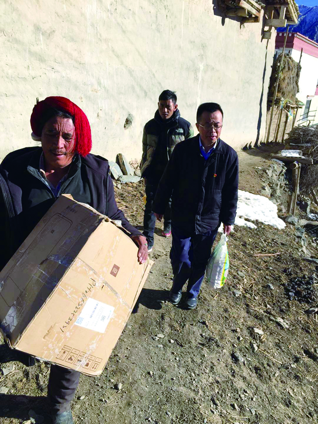 中国宝武武钢集团有限公司援藏干部,西藏自治区丁青县县委常委、政府副县长孙劲心系定点联系帮扶的贫困户。春节休假前夕,孙劲来到距离丁青县城120公里的当堆乡白日村,看望走访四户帮扶联系户,并向农牧民宣讲党的精准扶贫政策,教育农牧民听党话、感党恩、跟党走,并为贫困户送去冬衣、糌粑、酥油等慰问物资。 (阿其 摄影报道)