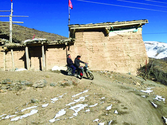 从白日村村委会到三组的农牧民家里需要乘摩托车或者步行。