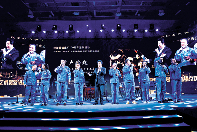 4月9日,为庆祝首钢百年、首钢京唐公司投产十周年,首钢集团和首钢京唐联合举办“十年筑梦、百年辉煌”高雅艺术鉴赏进首钢京唐活动(如图)。首钢职工代表800余人参加活动,与艺术家零距离接触,感受高雅艺术魅力。 (实习记者 杨立文 摄)