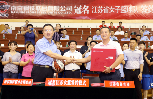8月8日,南钢冠名江苏女篮签约仪式在南钢体育馆举行,南钢全民健身日纪念活动暨“幸福南钢、健康生活”启动仪式同时举行。 南钢党委书记、董事长黄一新,江苏省体育局副局长王志光,南钢职工代表和江苏女篮全体运动员教练员等参加活动。在“幸福南钢、健康生活”启动仪式上,南钢发出“自觉做‘幸福南钢、健康生活’的倡导者、践行者、推动者,共同拥抱健康文明生活,共同建设美好幸福家园”的倡议。