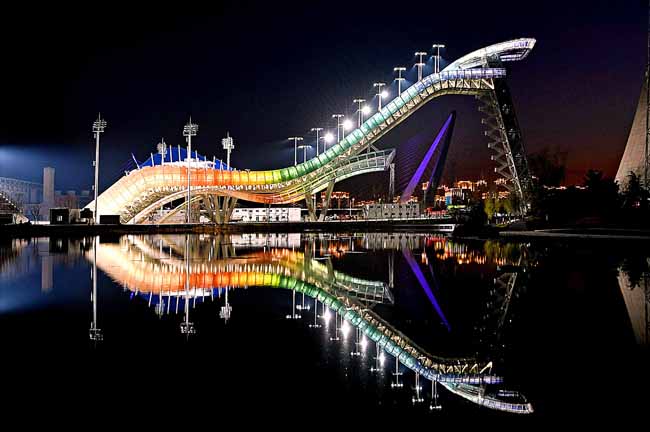 11月27日,作为北京冬奥会北京赛区首个建成的新建比赛场馆,首钢滑雪大跳台正式交付使用。据悉,首钢滑雪大跳台是冬奥历史上首个永久保留和使用的同类比赛场地,主要由赛道、裁判塔和看台区域三部分组成。2019沸雪北京国际雪联单板及自由式滑雪大跳台世界杯将于12月12日至14日在首钢滑雪大跳台举办。图为首钢滑雪大跳台夜景。 (特约通讯员 孙力 摄)