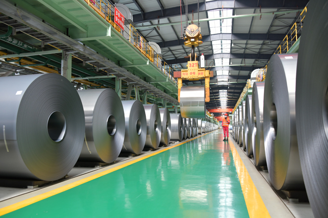 2月27日,沙钢集团冷轧厂硅钢车间成功调试生产SG50WH470牌号硅钢。据了解,该产品是目前沙钢冷轧生产的50系列产品中最高牌号硅钢,具有高效能、低能耗、低碳环保等显著特点,适用于新能源汽车电机、高效工业电机等产品和装备。图为沙钢冷轧硅钢车间生产现场。(孙静波 丁超 摄)