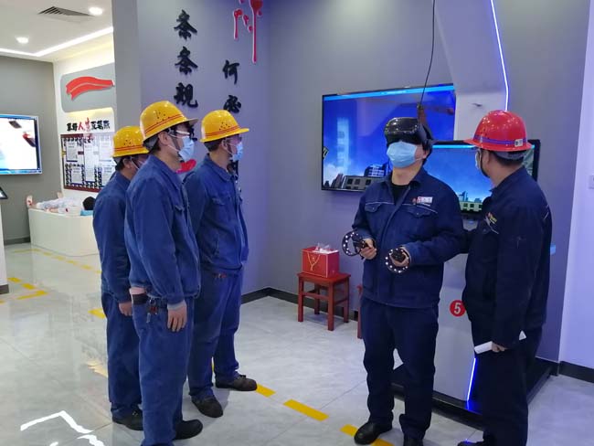 近期,陕钢龙钢公司安全教育培训室升级改造工作顺利完成,其中VR安全体验设备首次投用。该VR系统设置了高处坠落、起重伤害、交通安全、爆炸等各类型事故场景,通过三维仿真虚拟现场环境及事故发生瞬间,让体验者身临其境,从而提高一线员工安全意识。图为该单位炼钢厂职工正进行VR安全体验。(许峰 李刚 摄)