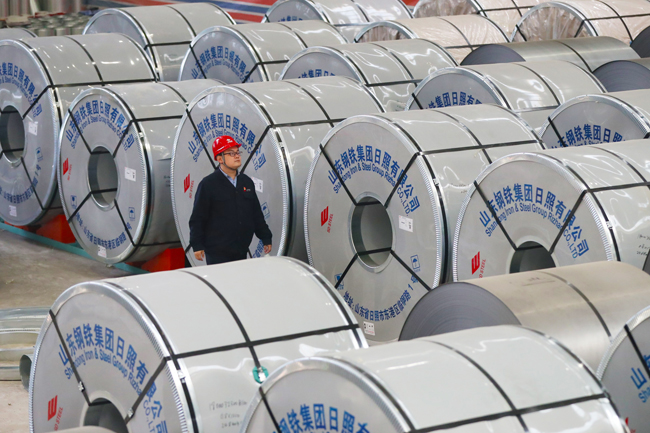 今年初以来,山钢股份营销总公司把握“变中求稳、稳中求进、进中求优”总基调,1~4月份,销售钢材648.13万吨,货款回收比去年同期增加34.94%,累计采购大宗原燃料571.33万吨,实现订单保障率、供应保障率、产销率、资金回收率4个100%。图为山钢日照公司冷轧部成品仓库。(特约通讯员 李建辉/文 通讯员 张庆祥/摄)