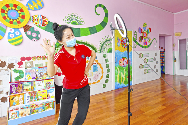 6月1日,河钢唐钢行福处龙华幼儿园幼师正在以视频连线方式与小朋友们游戏互动欢度儿童节(如图)。该幼儿园创新儿童节庆祝方式,通过网络平台实现师生互动,在唱歌、律动、表演的同时,还设置了“争做抗疫小卫士,健康宝宝动起来”等互动游戏,讲述抗疫英雄故事、健康卫生常识,培养小朋友们树立热爱祖国、崇尚科学的坚定信念。 (赵辉/ 摄 夏丽娜/文)