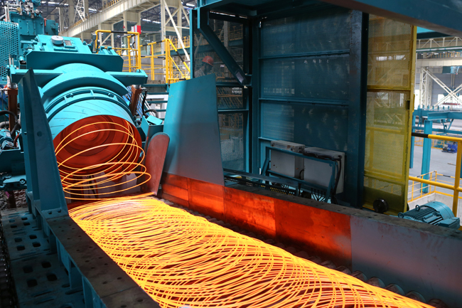 7月1日,世界第一公铁两用斜拉桥——“沪苏通长江大桥”正式通车。该桥所用斜拉索采用了中信泰富特钢集团旗下兴澄特钢、青岛特钢自主研发生产的世界最高强度2000兆帕级缆索钢丝用盘条。据悉,该桥共有432根斜拉索,每根斜拉索由直径7毫米的钢丝组成,拥有世界最高强度,单根斜拉索成桥最大索力可达1000吨,可吊起600多辆小汽车。这些斜拉索完全采用国内自主研发的兴澄牌高强缆索盘条,实现了2000MPa级缆索钢丝用盘条在特大型桥梁中的世界首次应用。图为兴澄牌高强缆索盘条生产现场。(特约通讯员 陆卫宇/ 摄 孙中伟 程文文/文 )