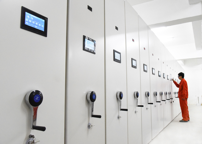 经过2个多月时间的试运行,截止到7月中旬,沙钢集团东北特钢抚顺公司新近投入运行的“档案存储管理查询系统”运行良好。据悉,该系统总投资100余万元,改造总面积1500平方米,有晒图室,阅览室,办公室,3个密集架库房和11个档案柜库房。图为该公司档案员工正在调整密集架。(吉勇 摄)