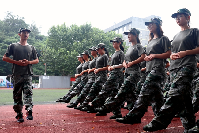 2015年进入南钢工作的郑强是一名“90后”,2008年~2013年曾在武警江苏总队宿迁支队服役,现在他是南钢保卫部特勤中队二班副班长。工作中,他善于将老队员的经验和年轻队员的激情相结合,合理优化人力配置,认真执行武装巡逻、蹲点守候、定点看护等标准化流程,班组各项工作在中队均名列前茅。图为郑强(左)为新入职的大学生示范军训基本动作。(特约通讯员 吴斌 摄)