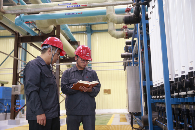 近年来,山钢集团日照公司投资1.3亿元建设海水淡化项目,优化公司的水量平衡,节约水资源,提高整个日照钢铁精品基地的供水安全性。截至8月18日,海水淡化项目累计外供一级除盐水突破200万吨,产水水质、水量均满足设计要求,工业新水用量同比降低450吨/天,枯水年可以提供30%~40%的新水用量,实现经济效益和社会效益双赢。图为该公司员工正在检查海水淡化项目设备运行情况。(孙运利 摄)