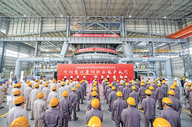 9月7日,随着河钢集团党委书记、董事长于勇下达投产令,河钢唐钢新区正式投产。现场欢声雷动。这标志着河北钢铁产业区位调整取得关键性突破,河钢集团面向未来、向海图强的集结号由此吹响!图为投产仪式现场。(河钢供图)