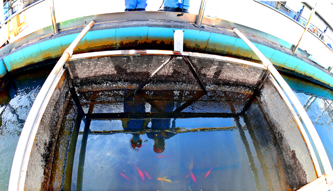 9月11日,太钢污水处理中心职工在生态鱼监测池取样(如图)。为确保污水处理出水高品质,太钢建设了生态鱼监测池,将鱼类生活的状况作为检验出水水质的重要指标,水质能不能符合生态用水要求,满足行业、地方及专业最严标准还不够,还需要鱼儿“说了算”。该监测池运行近两年来,鱼儿生活良好。 (特约通讯员 王旭宏 摄)