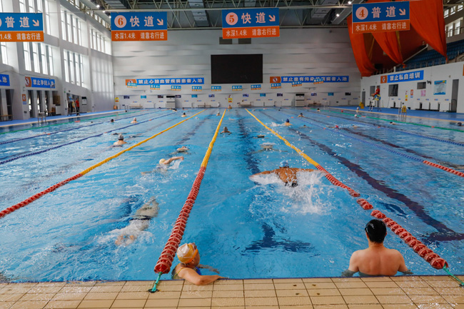 “没想到这一隔就是多半年,今天终于沾水了,能下水游泳的感觉真好啊!”9月20日,武钢体育中心游泳馆内一名武汉市民向笔者正讲述他畅游的快乐。今年2月4日,位于武汉市青山区的中国宝武武钢集团体育中心各场馆临时改建为方舱医院,至3月9日休舱,累计收治新冠肺炎患者519名,治愈出院患者372名,治愈率达71.7%。为尽快恢复场馆设施功能,武钢体育中心组织5次全面专业消杀,检测合格率100%。自7月初全部场馆开放以来,已陆续接待武汉市民22万余人次。图为游泳馆一角。(张磊 摄)