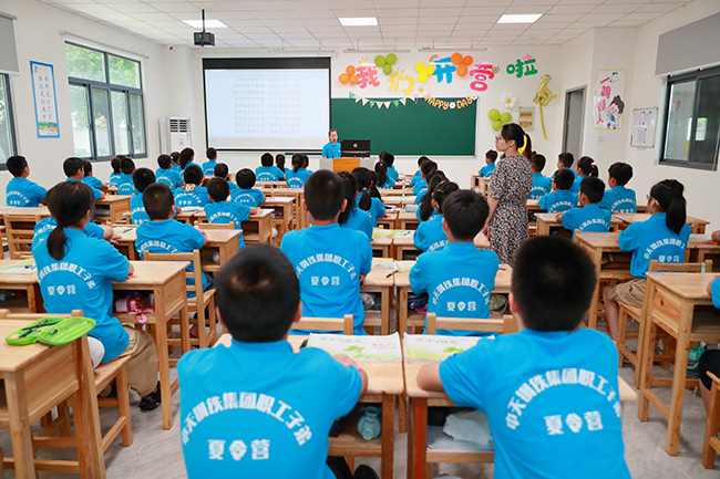 7月5日,中天钢铁集团职工子弟夏令营活动正式开营(如图)。据悉,本期夏令营从7月5日起持续到8月15日,为期7周。今年是该集团连续第4年举行职工子弟夏令营活动。为满足职工子女暑期在家无人看管的需求,让员工能够安心工作,自2020年,中天钢铁集团启动职工子女夏令营活动,从最初30人扩展到今年406人,累计已为近千名职工子女提供免费夏令营服务。(陈明 摄)