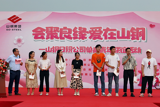 7月8日,山钢日照公司组织开展“会聚良缘·爱在山钢”单身青年联谊活动,来自该公司和日照市各单位的180余名男女青年参加了此次活动。活动设置牛郎织女、一网情深、传情天使、终极告白等环节。最终,有逾10对青年男女成功牵手。图为活动现场。(特约通讯员 郭阳 摄)