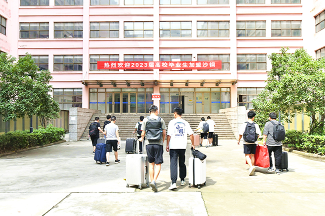 又是一年毕业季,日前,来自东北大学、北京科技大学、中国矿业大学、苏州大学等国内重点高校的370余名应届毕业生们加入了沙钢大家庭,其中“双一流”院校本科、硕士毕业生近80人。为让大学生们能够“宾至如归”,沙钢早早安排了专人、专车接站,并为每个大学生准备了全套生活用品,提供“一条龙”办理入职服务,真正让大家“拎包入住”。图为高校学子正进入沙钢报到。(孙静波 摄)