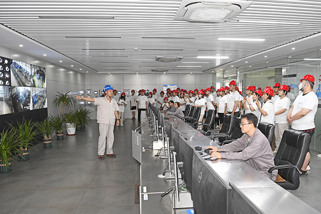 8月26日,河钢集团唐钢公司邀请了包括各级人大代表、政协委员、优秀党员、民主党派人士、劳动模范、三八红旗手、优秀团员等在内的66位职工代表及其家庭成员, 深度游钢城,直观感受唐钢80年历史巨变和转型发展新成就。据悉,唐钢1943年建厂,1952年试验成功“侧吹碱性转炉炼钢法”,奠定了“共和国转炉的故乡”的地位。 这一重大技术成果被国家科委列为“国家级 发明”,在我国冶金工业史上具有划时代的意义。图为“探亲团”在唐钢炼铁事业部一号高炉主控室参观。 (赵辉 摄)