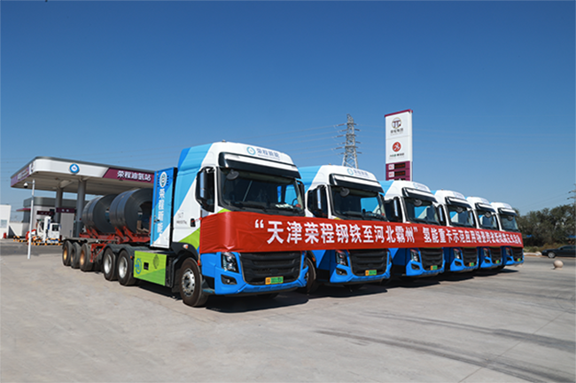 9月22日,荣程集团氢能重卡跨省线路启动仪式在荣程商用油氢站举行,往返于天津和河北霸州之间运输线路上的首批运营氢能重卡发车,标志着该集团氢能重卡第二条跨省线路正式开通(如图)。2018年以来,荣程氢能产业发展迅速,目前已经成为国内拥有在市政道路实际开展氢能重卡运输业务车辆最多的实体企业之一。截至目前,荣程氢能重卡运输车辆共有225辆,加氢量累计达到906.95吨,运输量累计达772.59万吨,减少二氧化碳排放7270吨;累计行驶里程为789.82万千米。 预计到2023年底,荣程氢能重卡运营数量将突破300辆。 (侯荣/文 姜坤/摄)