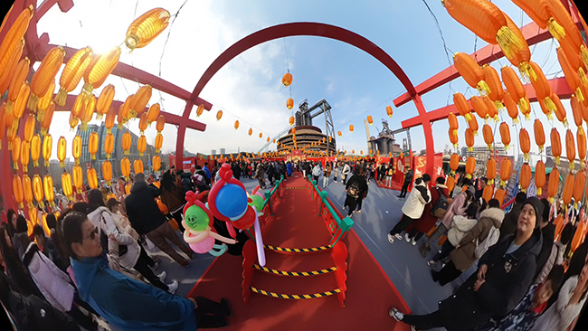 龙腾迎新春。2024年新春佳节,首钢园举办首届新春游园会“龙年古风”游园会。工业遗存、冰雪元素和亮丽的景观完美融合,一高炉SoReal科幻乐园科技庙会和三高炉脚下的传统庙会各具特色、相得益彰,工业风里的新年味吸引了众多市民游览。据统计,从除夕至大年初六共有超18万名游客打卡游园,其中大年初四当天参观游览的达到32663人。图为首钢园新春游园会现场。(特约通讯员 孙力 摄)