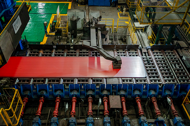 4月9日,中国宝武中南股份鄂钢宽厚板产线正在生产DH690焊接结构用淬火回火船板(如图)。近日,鄂钢宽厚板产品创值团队项目组完成了DH690焊接结构用淬火回火船板钢的试制与首次供货,实现了船板强度等级由355兆帕向 690兆帕提升的大幅跨越。据悉,该产品在小批量生产试制中一检性能合格率达到100%,钢板质量与性能稳定,试制取得圆满成功,从而填补了中南钢铁690兆帕级焊接结构用淬火回火船板钢的空白;目前已经试制1800吨,将用于船舶制造、海洋平台建设等工程。(王孝东/文 彭宇昂/摄)
