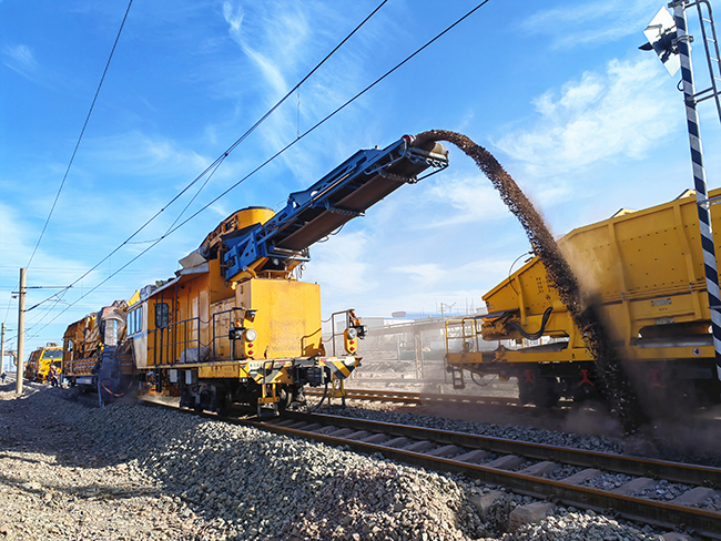 5月20日,酒钢集团物流公司利用大型铁路道砟清筛机和大型捣固机对铁路专用线开展清筛捣固作业(如图)。酒钢北环线始建于20世纪60年代,是国铁绿化站至酒钢嘉北站的铁路专用线,每年运输量达2000多万吨。2022年,酒钢应用无缝线路技术对北环线进行改造,将区间5.18千米长的线路的钢轨更换为无缝钢轨。项目实施后,有效解决了钢轨接头磨损、曲线病害等问题,铁路检修工作量降低50%以上,每年节约成本50余万元。无缝线路创新技术的成功应用,使酒钢成为国内冶金行业拥有最长无缝铁路的企业。(杜娟娥/文 谭畅/摄)