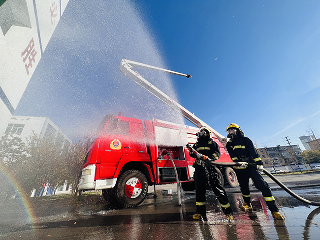 今年6月份是第23个全国“安全生产月”,今年的主题为“人人讲安全、个个会应急——畅通生命通道”。连日来,张宣科技武装保卫部进行消防安全、防火救援等方面的实战演练,持续提升救援能力,为保障企业安全稳定生产夯实基础。图为张宣科技武装保卫部进行消防实战演练。(王杨/文 张赛翔/摄)
