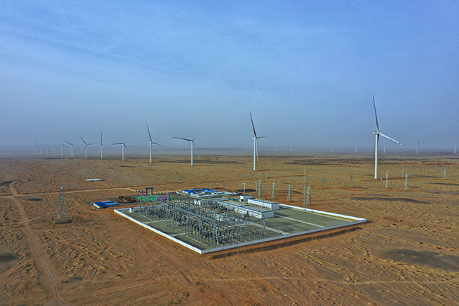 今年初以来,酒钢集团积极构建以新能源为主体的新型电力系统,消纳清洁能源,深入推进电能替代,促进企业绿色低碳发展。今年1月—5月份,酒钢新能源置换电量累计达13.26亿千瓦时,较去年同期增长66%,相当于节约标准煤39万吨、减排二氧化碳97.4万吨,置换规模和占比均创历史新高。图为酒钢智慧电网及新能源就地消纳示范项目玉门红柳泉一期200兆瓦风电项目俯瞰。(张志方 摄)